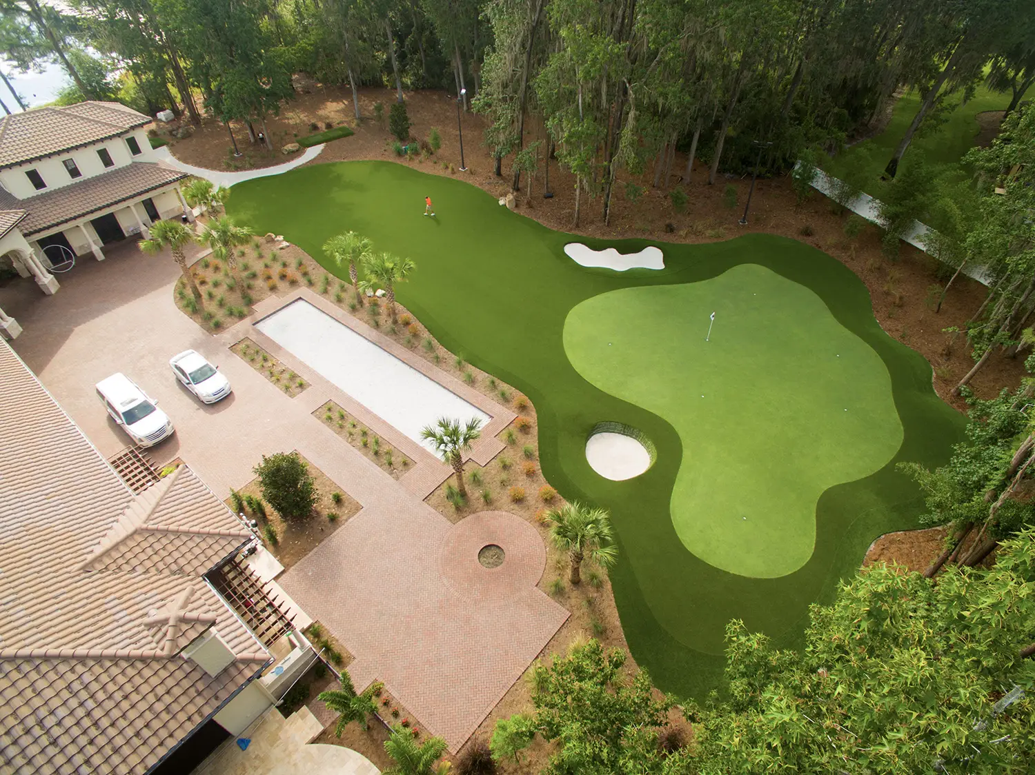 Add a professional touch to your backyard with a custom putting green—perfect for improving your short game and enhancing your outdoor aesthetic.